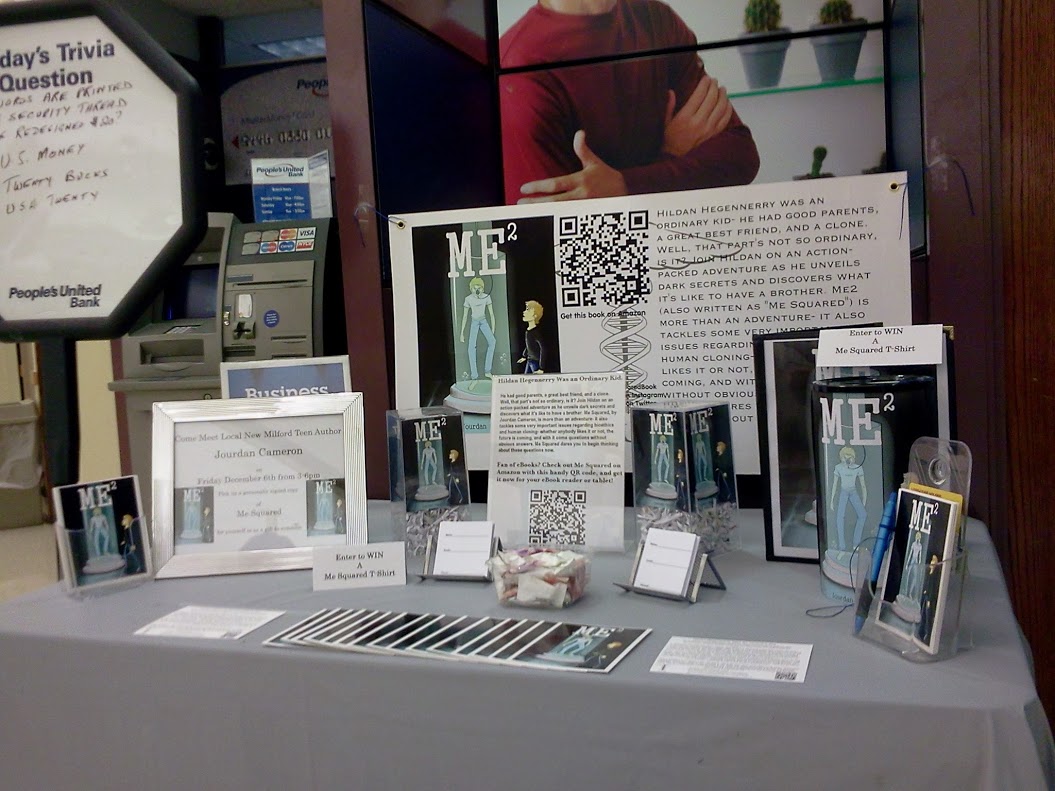 As of late, I’ve been hard at work spreading the word of Me Squared. I recently held and event at my local People’s United Bank, which has a special spotlight for local businesses. The event went pretty well; plenty of people got to hear about my book, and I’d really like to thank the folks at my local People’s, especially Cynthia. They were all very helpful and cooperative, I’d definitely recommend doing banking there.